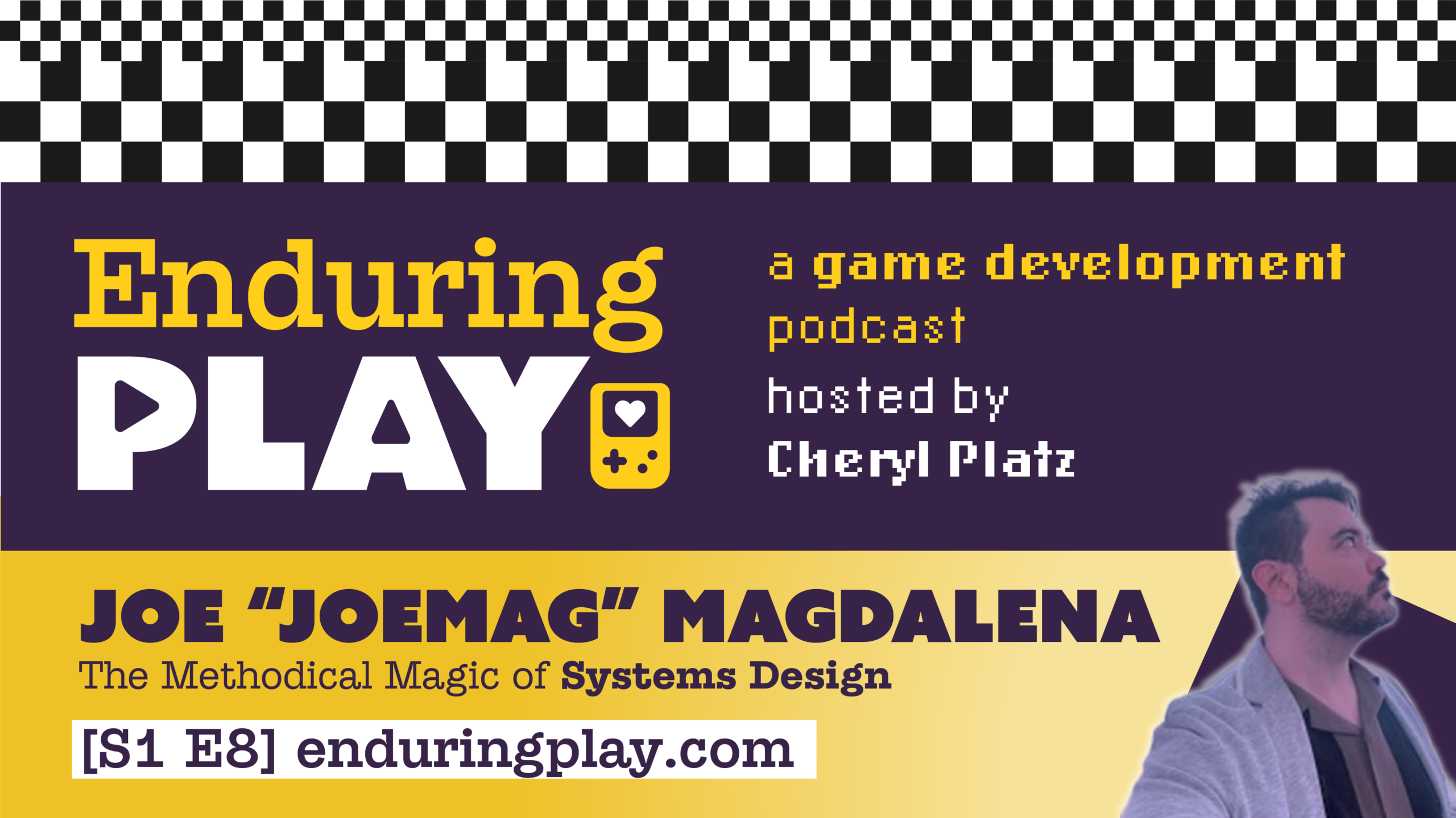 The eighth episode of Enduring Play, A Game Development Podcast hosted by Cheryl Platz is now available with guest Joe Magdalena, better known around the internet simply as joemag, sharing his perspective as an experienced systems designer on games like Hearthstone and