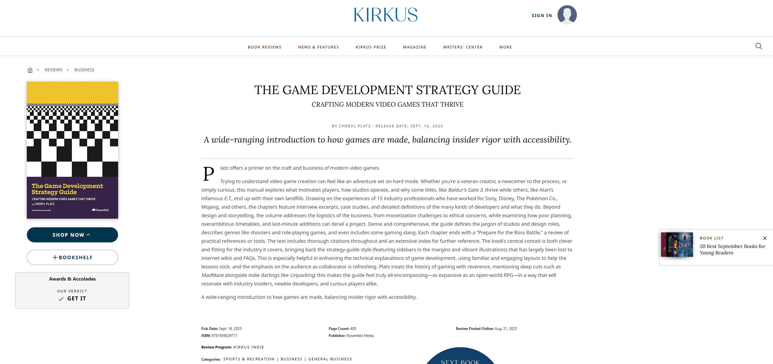 To preview why Kirkus Reviews is so excited about The Game Development Strategy Guide, check out the review on the Kirkus Reviews website: